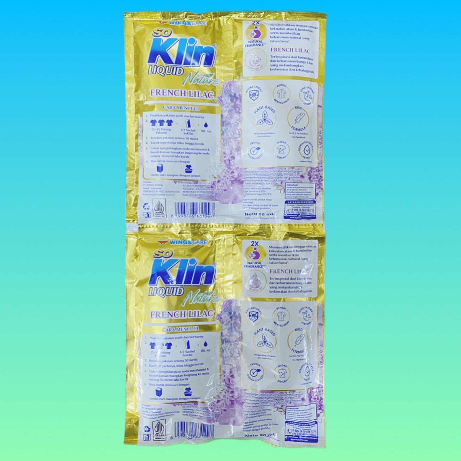 So Klin Liquid Nature adalah deterjen cair konsentrat dengan aroma French Lilac yang menyegarkan. Mengandung ekstrak tumbuhan alami, produk ini dirancang untuk memberikan hasil cucian yang bersih, harum alami, dan lembut di tangan. Dengan formula 2X cuci, setiap sachet cukup untuk dua kali pencucian, memberikan hasil maksimal dengan pemakaian yang lebih hemat.