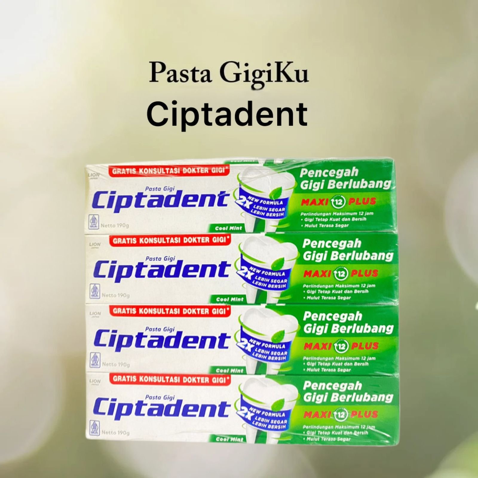 Ciptadent Maxi 12 Plus adalah pasta gigi dengan perlindungan ganda untuk mencegah gigi berlubang dan menjaga nafas tetap segar. Diformulasikan dengan teknologi terbaru, pasta gigi ini memberikan sensasi cool mint yang menyegarkan serta menjaga gigi tetap kuat, bersih, dan sehat.