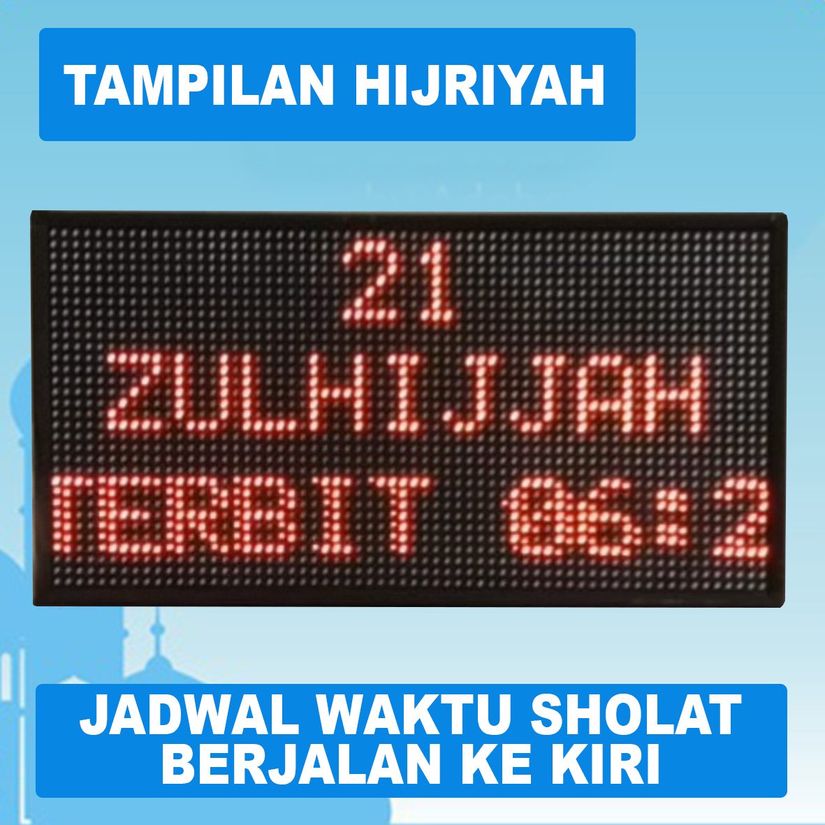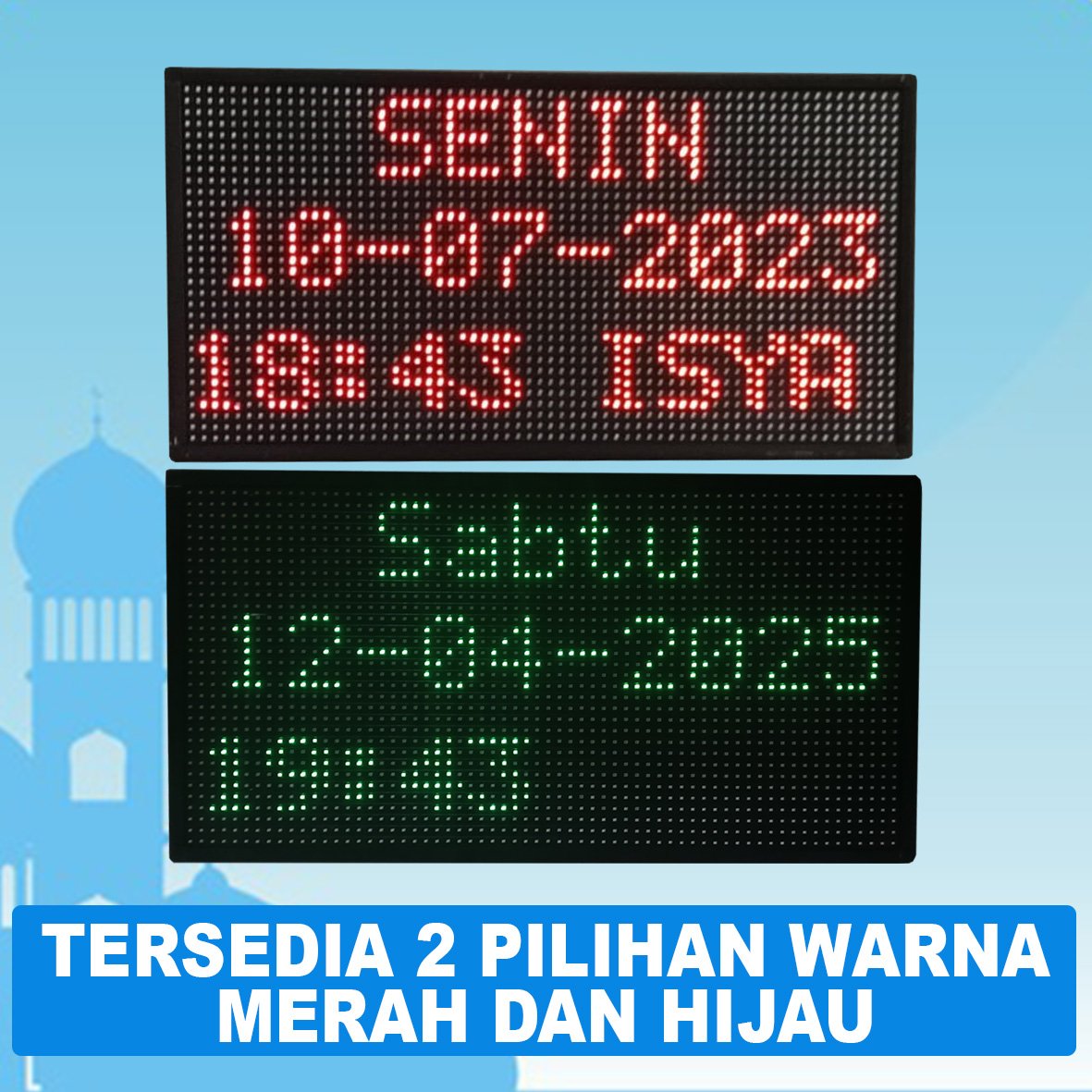 • Hitungan Iqomah Otomatis: Menampilkan countdown iqomah sesuai waktu yang telah disetting.